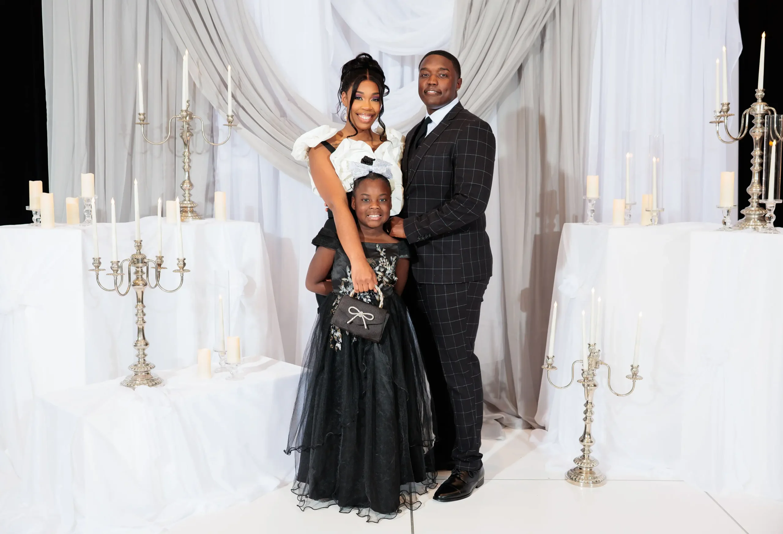 Guests were greeted by white sheer draping, sparkling chandeliers, glowing candelabras, and candlelight, while a live harpist filled the space with soft, ethereal melodies. Inside, the stunning ballroom dazzled with “wow” moments: the LED stage backdrop made a striking statement, and the tables were both dreamy and dramatic, adorned with lush white rose arrangements and flickering candlelight. BMW added an extra touch of luxury, showcasing one of its vehicles right in the ballroom.